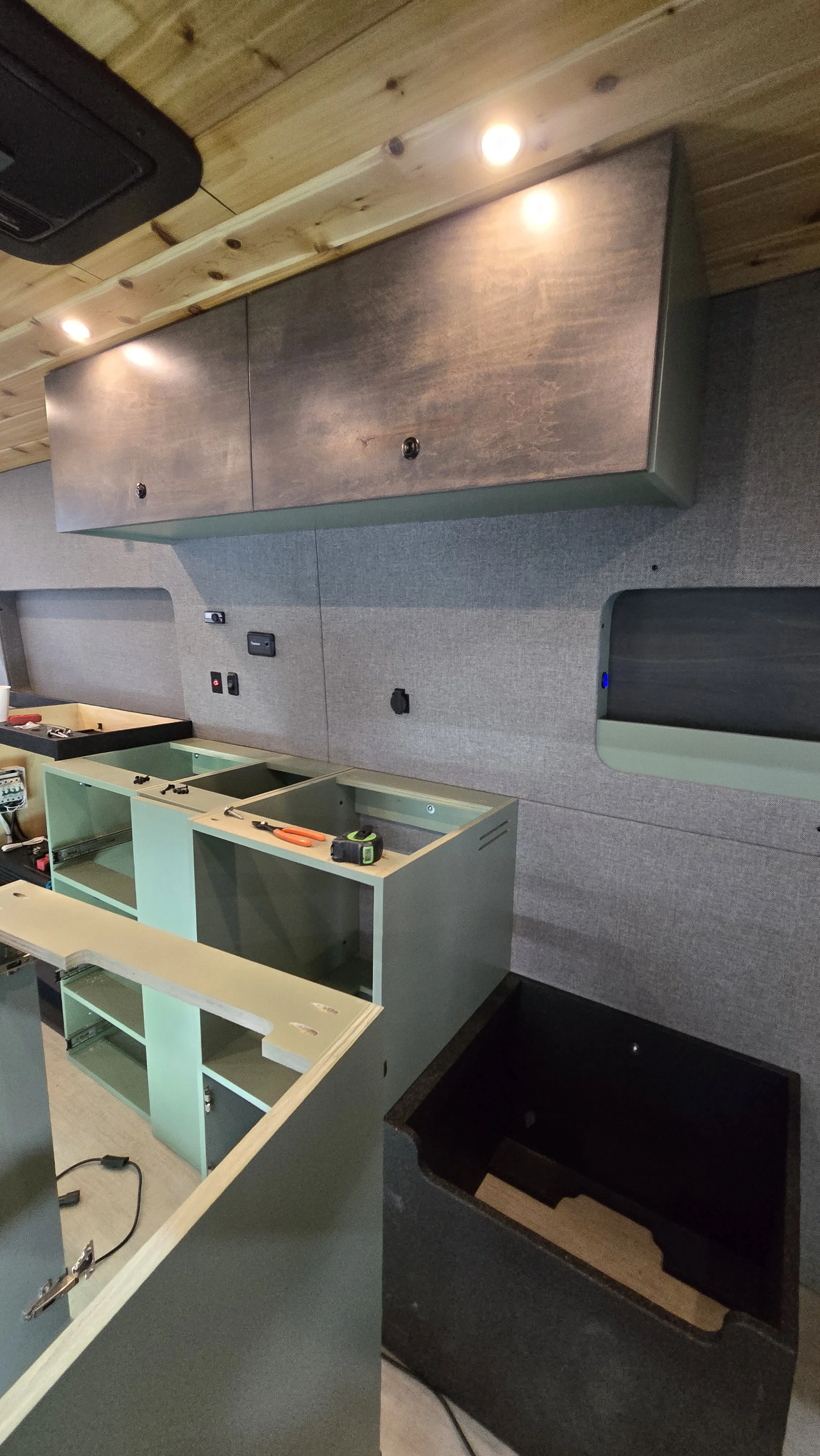There’s a special moment in every build when the big pieces are done and the van really starts to feel like someone’s future home on wheels.